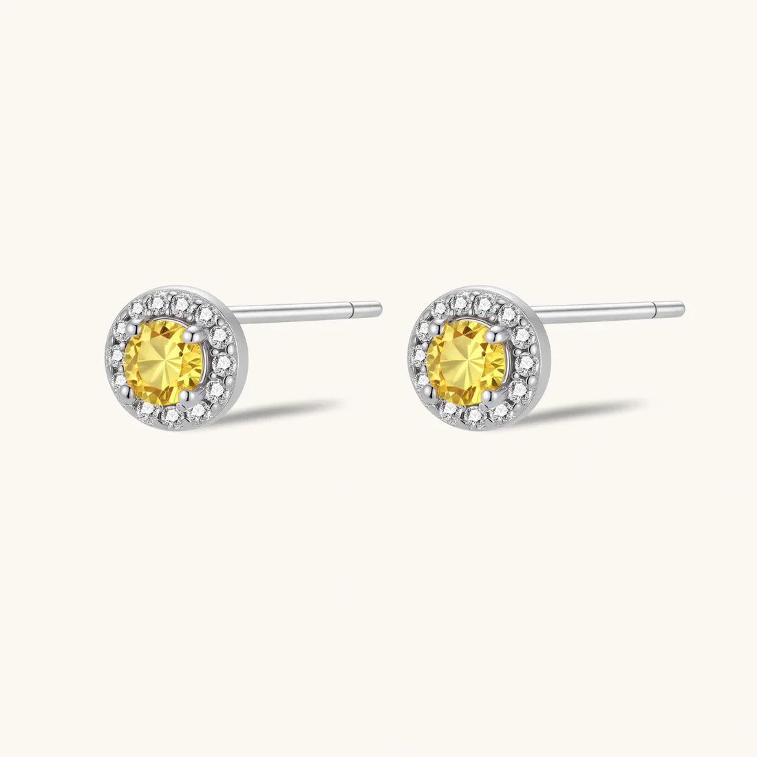 Gi hverdagen et snev av solskinn med disse drømmende halo-studsene. Kombinasjonen av strålende gul moissanite og 925 sterling sølv skaper et smykke som formelig gløder.